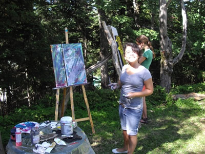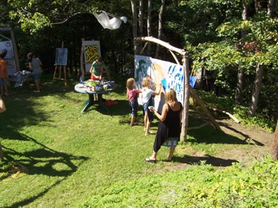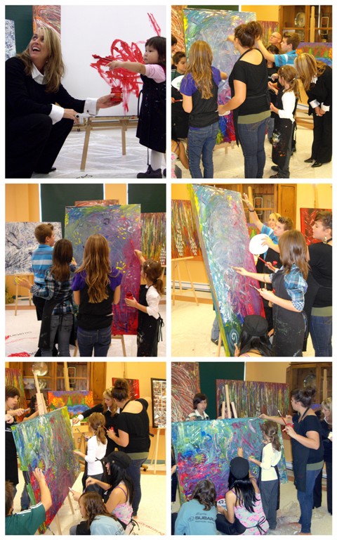 Atelier Toile blanche du dimanche 26 septembre avec les jeunes mannequins du défilé de mode Bébé Boomerang 2010 et plusieurs jeunes de Lac-Beauport. Le tout s'est déroulé au centre communautaire de Lac-Beauport, tout un party de peinture avec ces jeunes pleins d’énergies ! La toile qui en a résulté a été remise à la maison des jeunes le Cabanon.