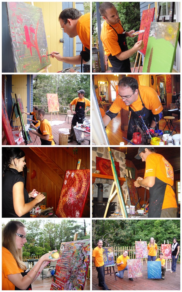 Les Ateliers Toile blanche sont maintenant offerts aux entreprises, groupes, associations etc. en contexte de Team bulding, permettant aux participants de vivre une expérience unique de création en groupe.