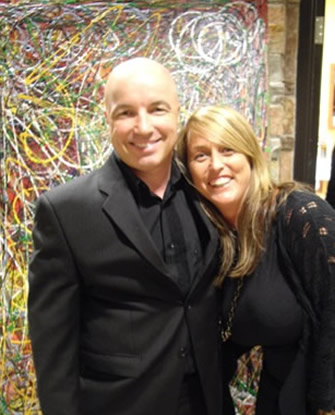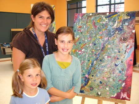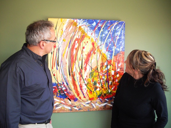Suzanne et Karine Daigle devant la très belle toile de Karine, résultat de sa